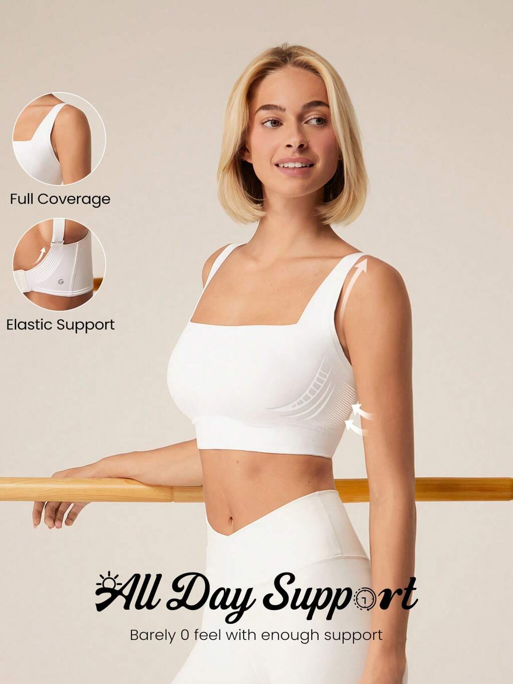Biustonosz sportowy bez szwów, zapewniający całodzienne krycie, o niskim wpływie na codzienne ćwiczenia jogi, ultralekki, z pełnym pokryciem, z wyjmowanymi miseczkami