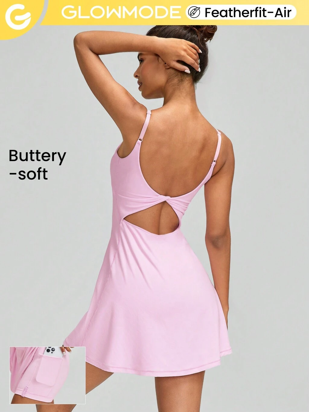 Vestido Mini Nó com Decote em U Feito com Tecido FeatherFit™-Air