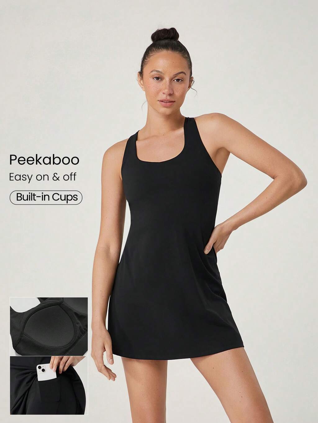 Vestido de Verão FeatherFit™-Air Peekaboo com Bolso Interno, Shorts Embutidos, Antiderrapante, Suporte Leve, Ioga de Baixo Impacto, Secagem Rápida e Transpiração