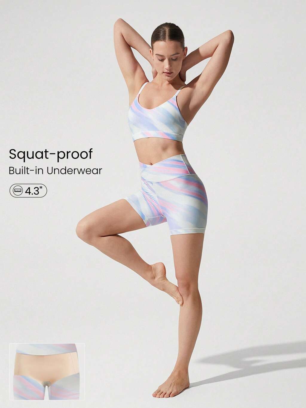 Short Bikers FeatherFit™ de 4,3 pol. com Cruzamento Anti-Deslizante e Shorts Sem Costura Embutidos, Ioga de Baixo Impacto Diária na Academia