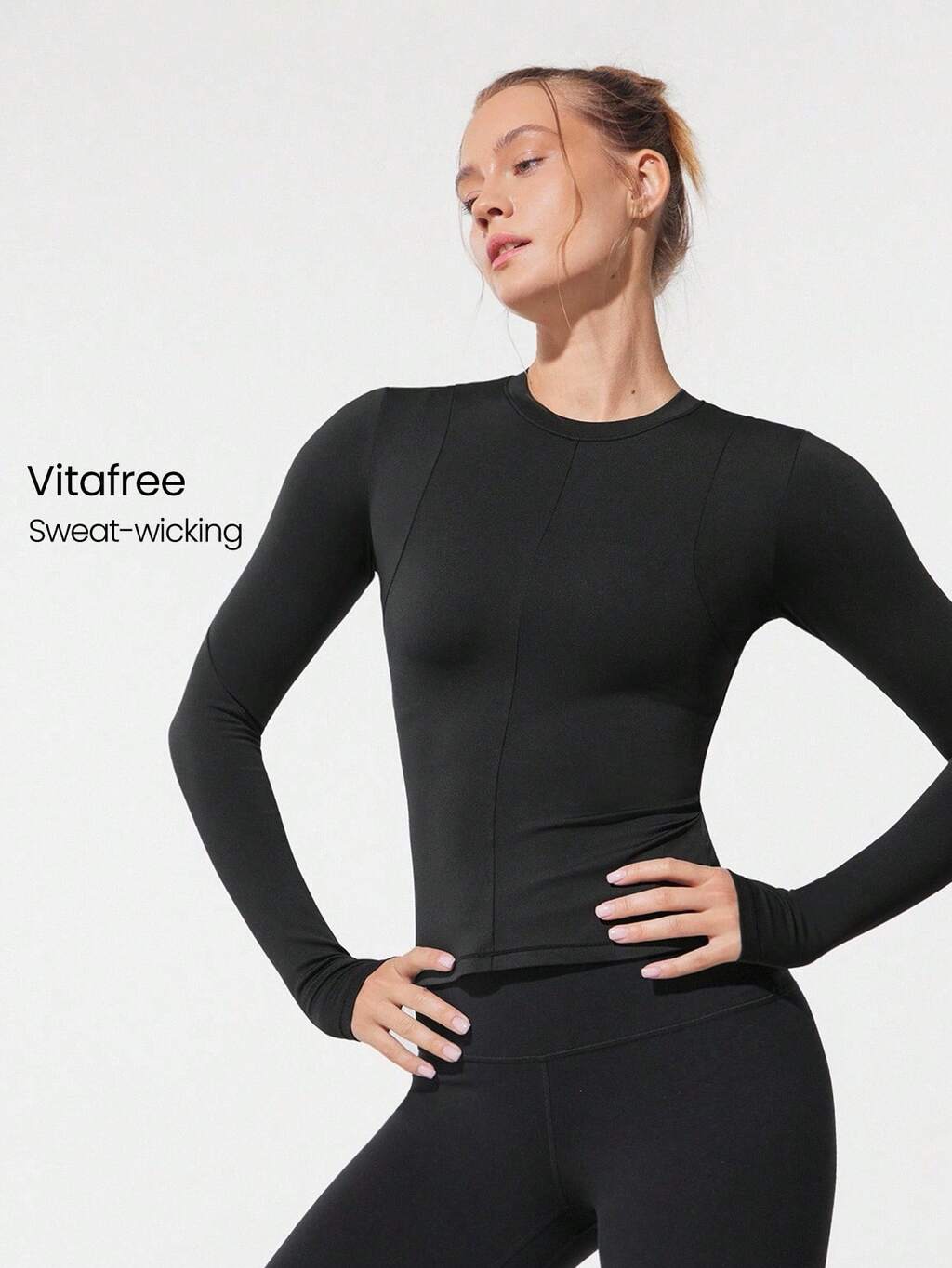 Top de Manga Longa Slim Fit com Punhos, Cintura Quente, Tecido Tricotado, Ideal para Corrida, Caminhada, Academia e Uso Diário, Absorvente de Suor