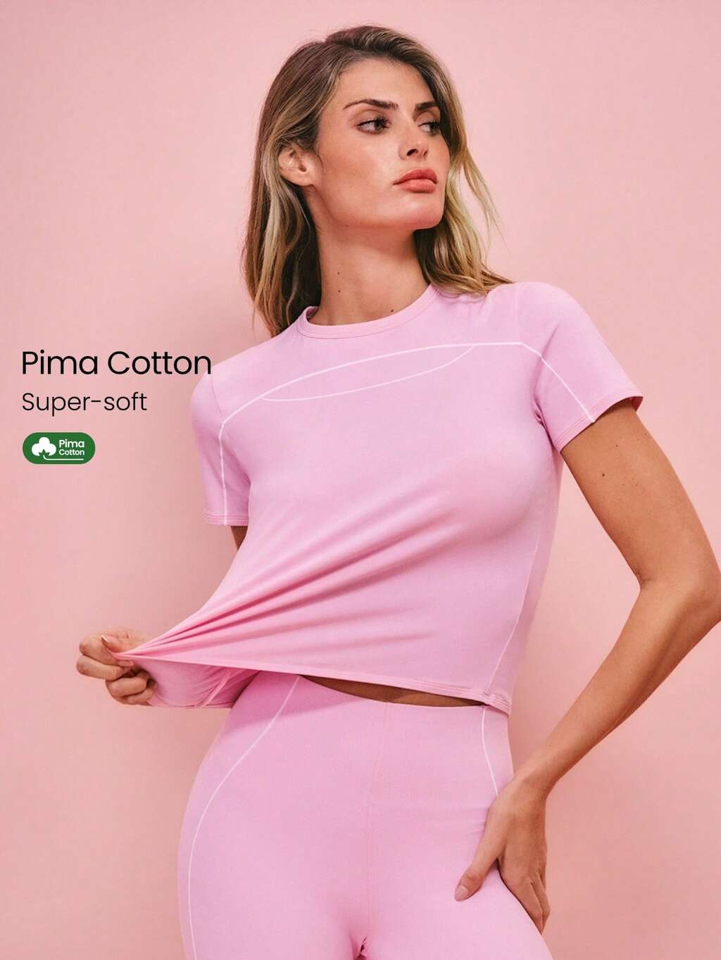 Pima Cotton Off-Duty Ultra-Soft Breathable Lightweight Stretchy Contrasting Seams Relaxed Fit Slim-Fit Crewneck T-Shirt Gym Workout Studio Daily Casual Wear